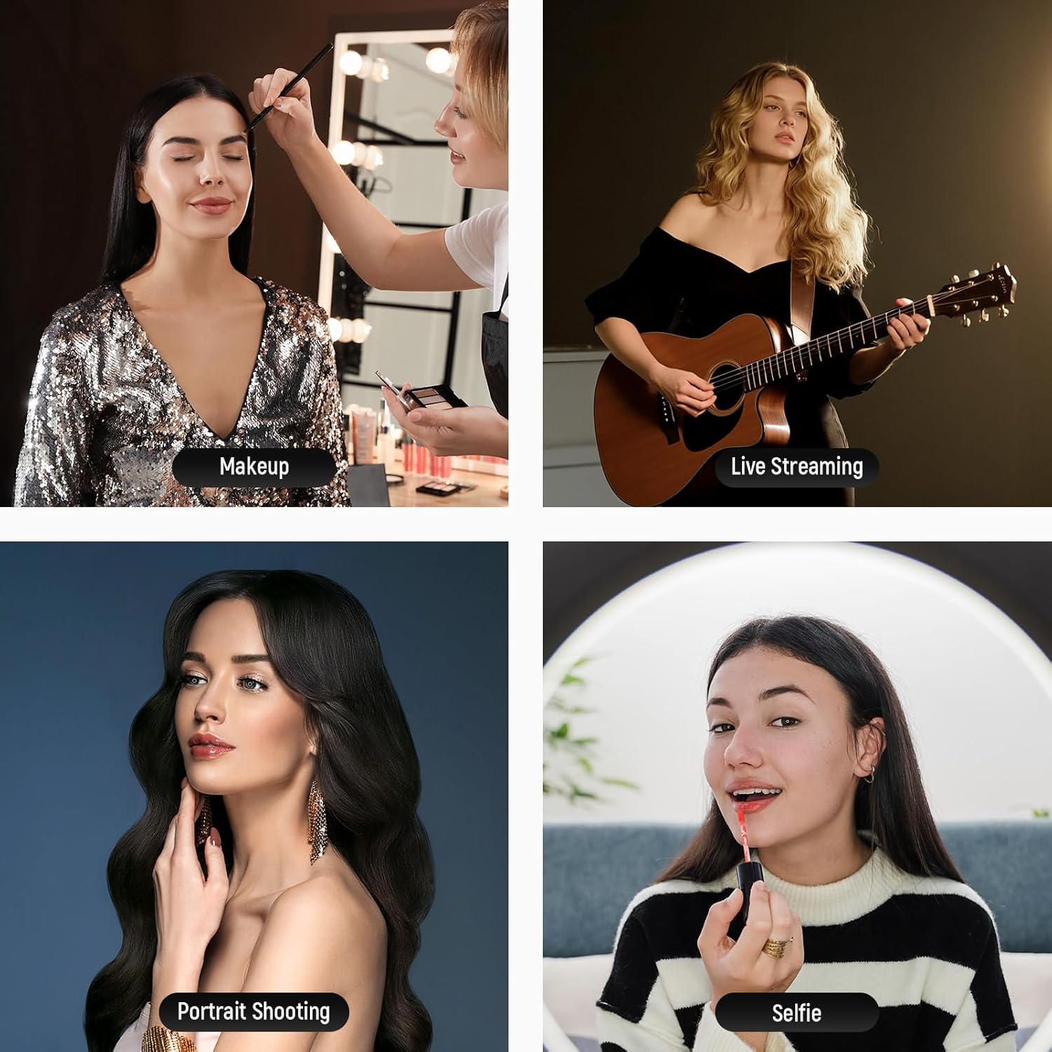 - 【Touch Screen & LCD Display】 This standing halo ring light with stand as studio lighting kit equipment features a responsive touch panel and a built in LCD display for intuitive adjustment of brightness and color temperature. The LCD screen clearly shows current luminance and color temperature levels, making professional continuous lighting setup quick and efficient