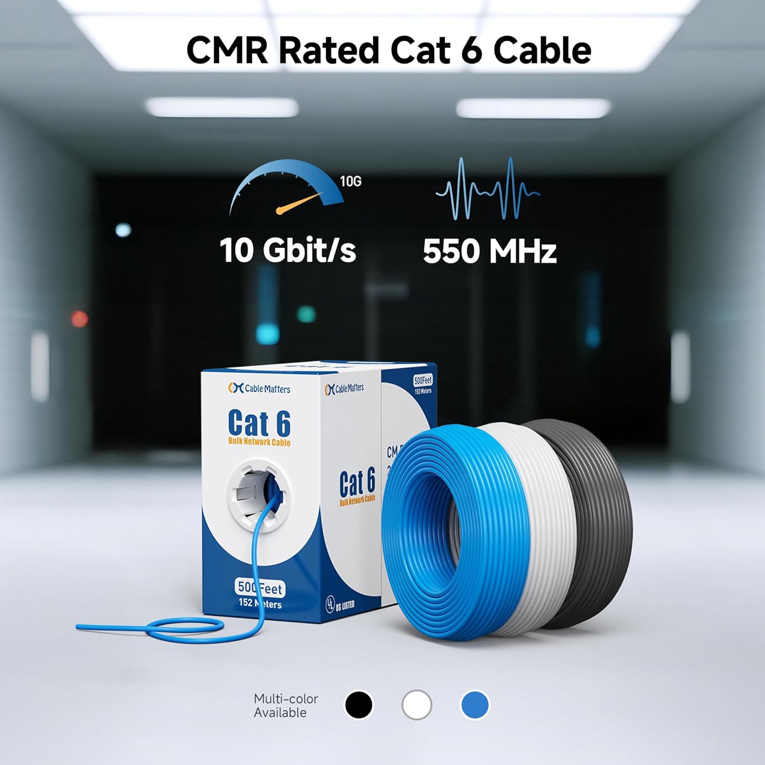 - High-Performance Cat6 Cable: This UL Listed (E485863) Cat6 Ethernet cable bulk spool offers 23 AWG, CMR riser-rated construction, making it ideal for high-speed networking in homes and offices. Designed for 10-Gigabit Ethernet, it is backward compatible with Gigabit and Fast Ethernet for versatile connectivity.