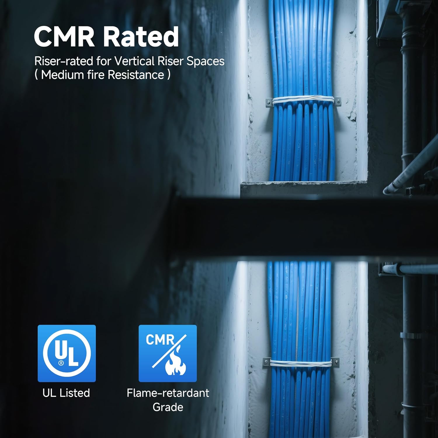 - Riser-Rated Safety: The riser-rated (CMR) jacket provides superior fire resistance, making this ethernet cable spool suitable for installation between floors in residential or commercial buildings. Its safety rating offers peace of mind for professional network installations in multi-story environments.