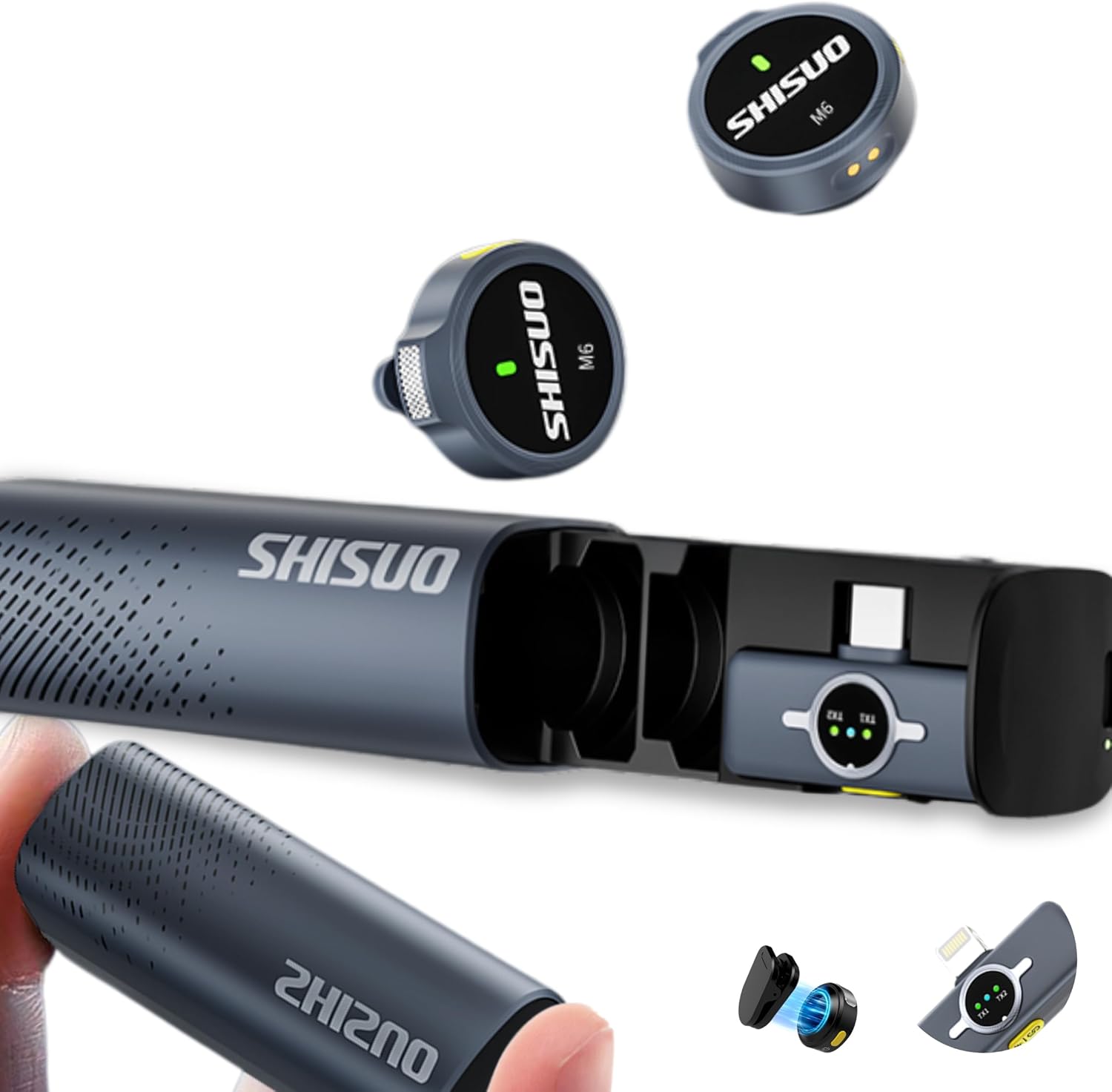 - Included Components : Charging Case, Lightning Adapter, USB-C Cable, Wireless Microphone