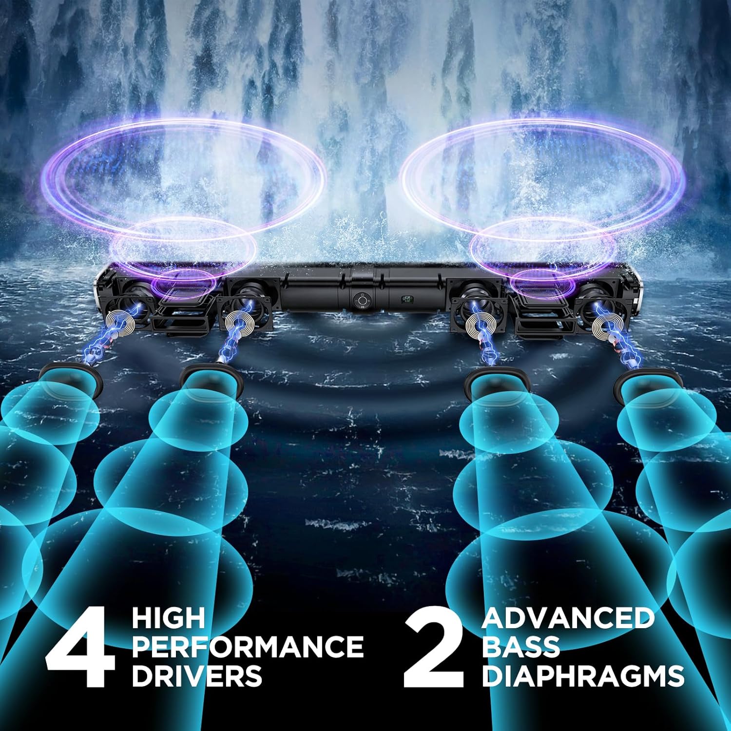 - ใ๐๐ฉ๐ข๐ ๐๐ข๐ง๐๐ฆ๐ ๐๐ฎ๐๐ข๐จใ: Powered by 4 high-performance drivers, 80W powerful sound output, it provide richer details, like soft whisper or subtle croon, whether deep thunder or sonorous roar, turn flat audioto vivid, adding weight to music, making the virtual game experience immersive.