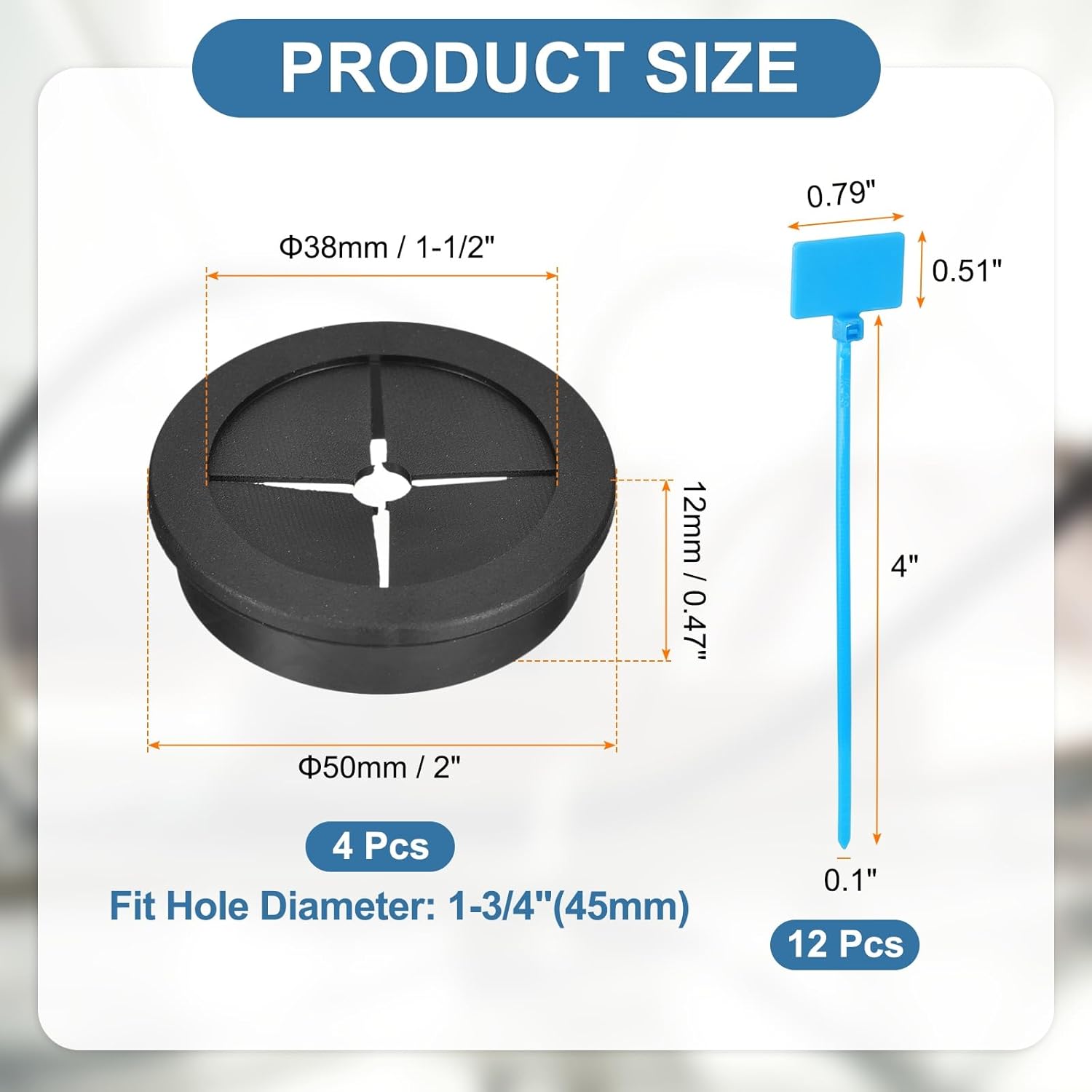 uxcell 4Pcs Cable Cord Grommet, 1-3/4"(45mm) Rubber Desk Grommets Wire Pass Through Hole Cover with Marked Cable Ties for Home Office Cable Wire Protection, Black