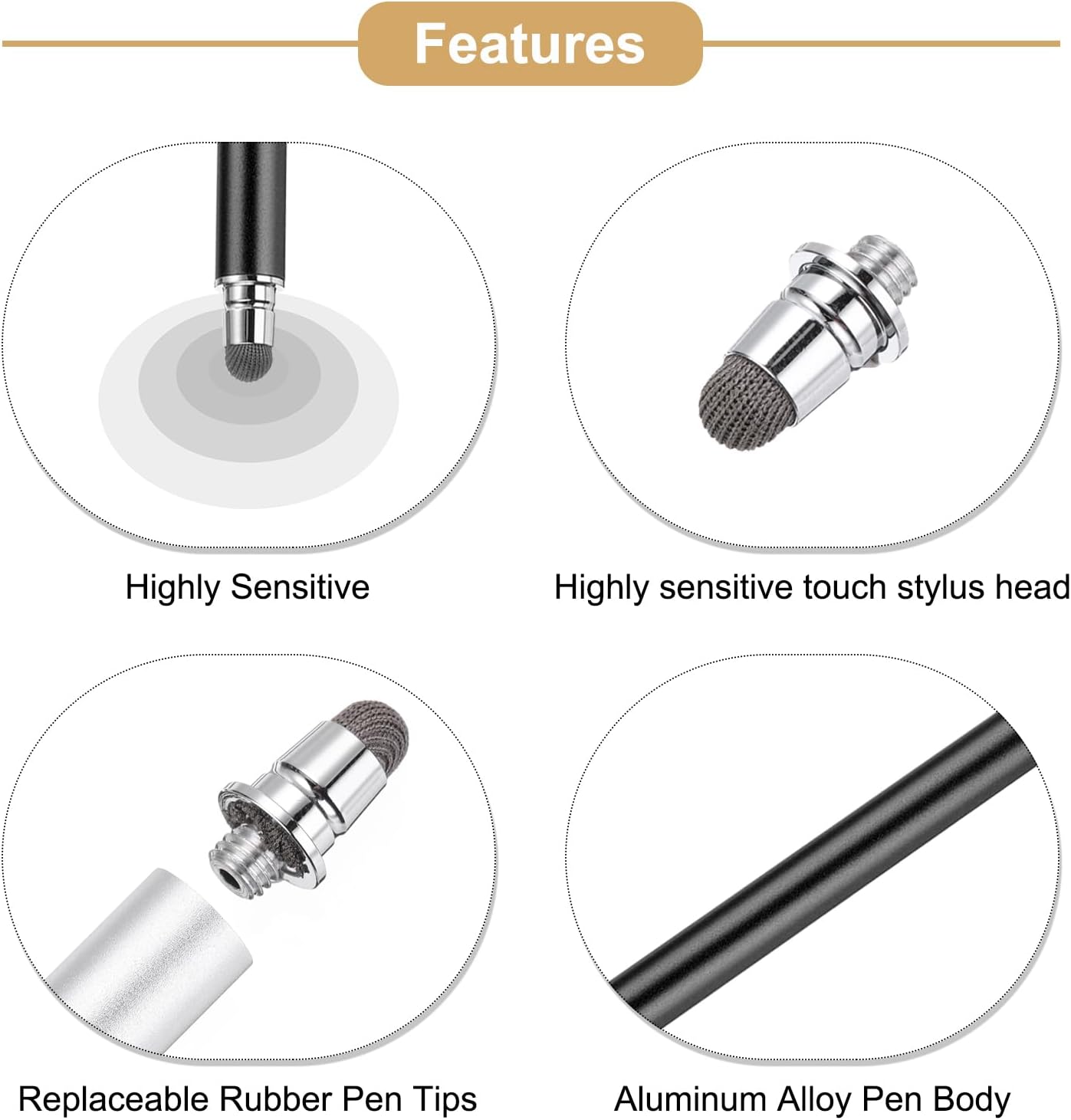 - Highly sensitive and high-precision stylus touch pen, does not harm the capacitive touch screen of mobile phone, tablets, etc; Replaceable pen tips, which does not require tools during replacement, are convenient, quick, and easy to operate; Aluminum alloy pen body, elegant and beautiful; With a clip, stylus pen is easy to carry