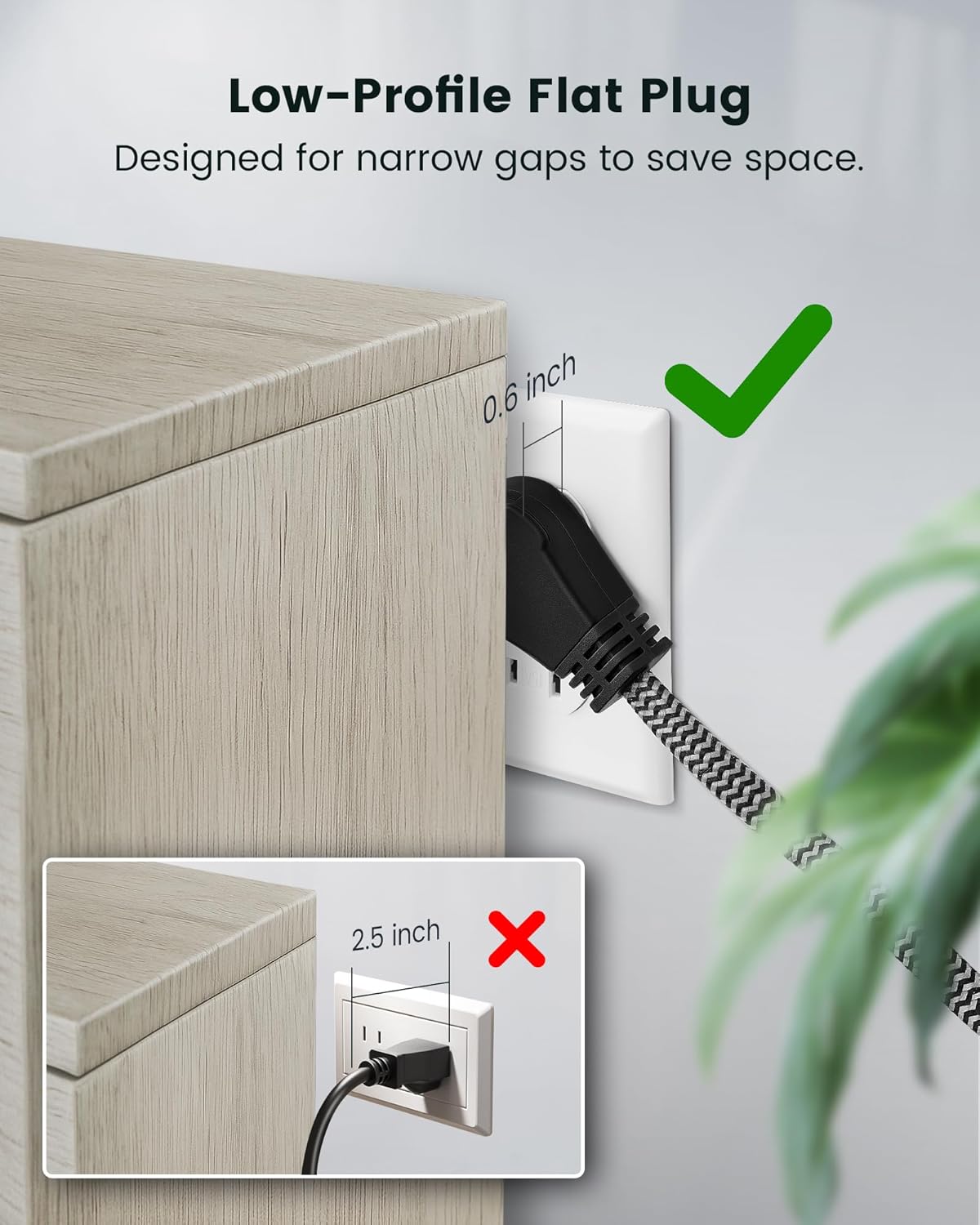 - Space-Saving Flat Plug Design: 3FT long power extension cord with space-saving flat plug fits easily in tight spaces and behind furniture, ensuring a tidy and organized space. This design maximizes space in your home