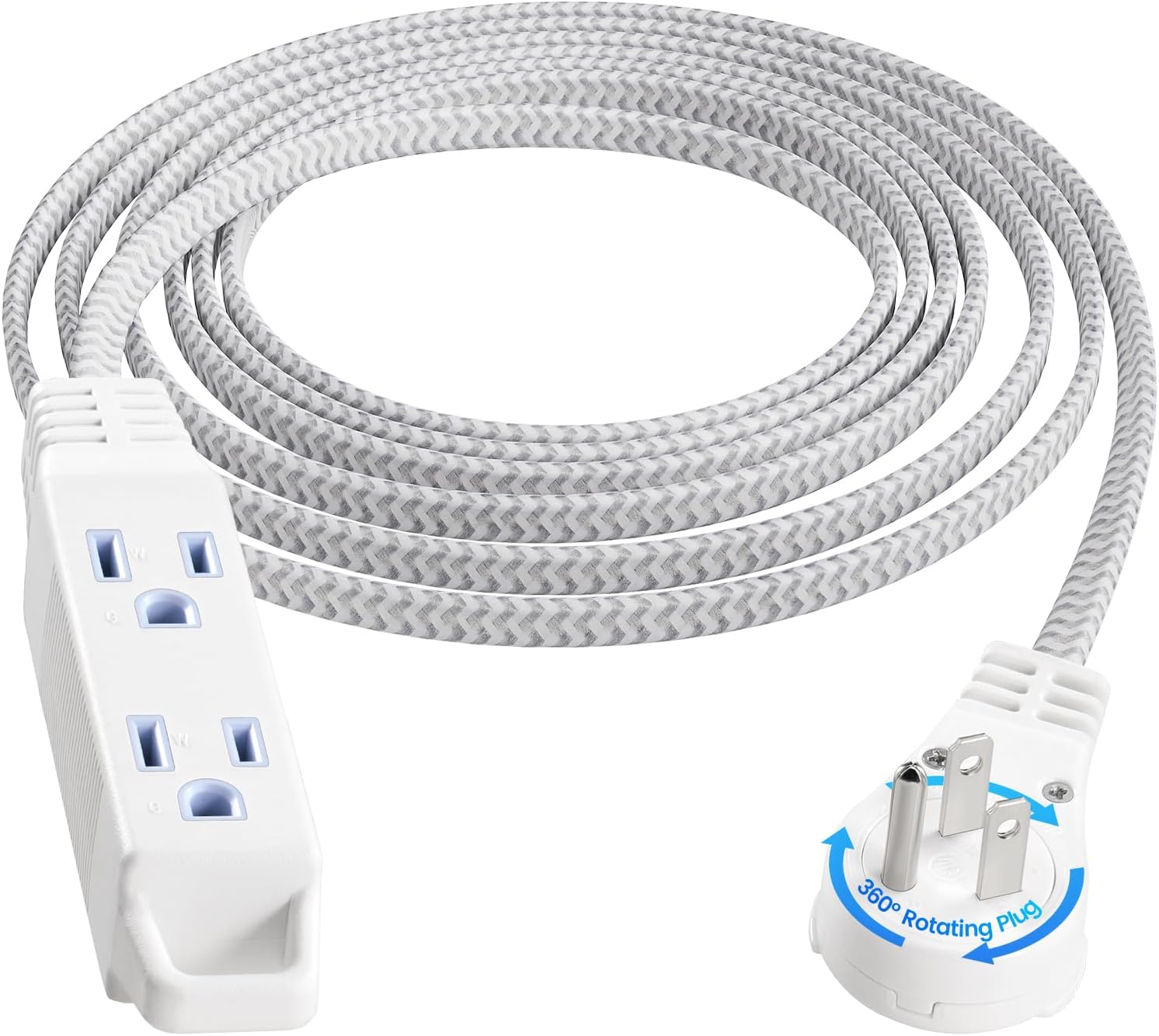 - 360° Rotating Plug: Featuring a 360° rotating plug (only 0.6 inches thick), this extension cord allows you to adjust the angle for easy access to various wall sockets. Ideal for tight spaces, it ensures convenient connections from any direction