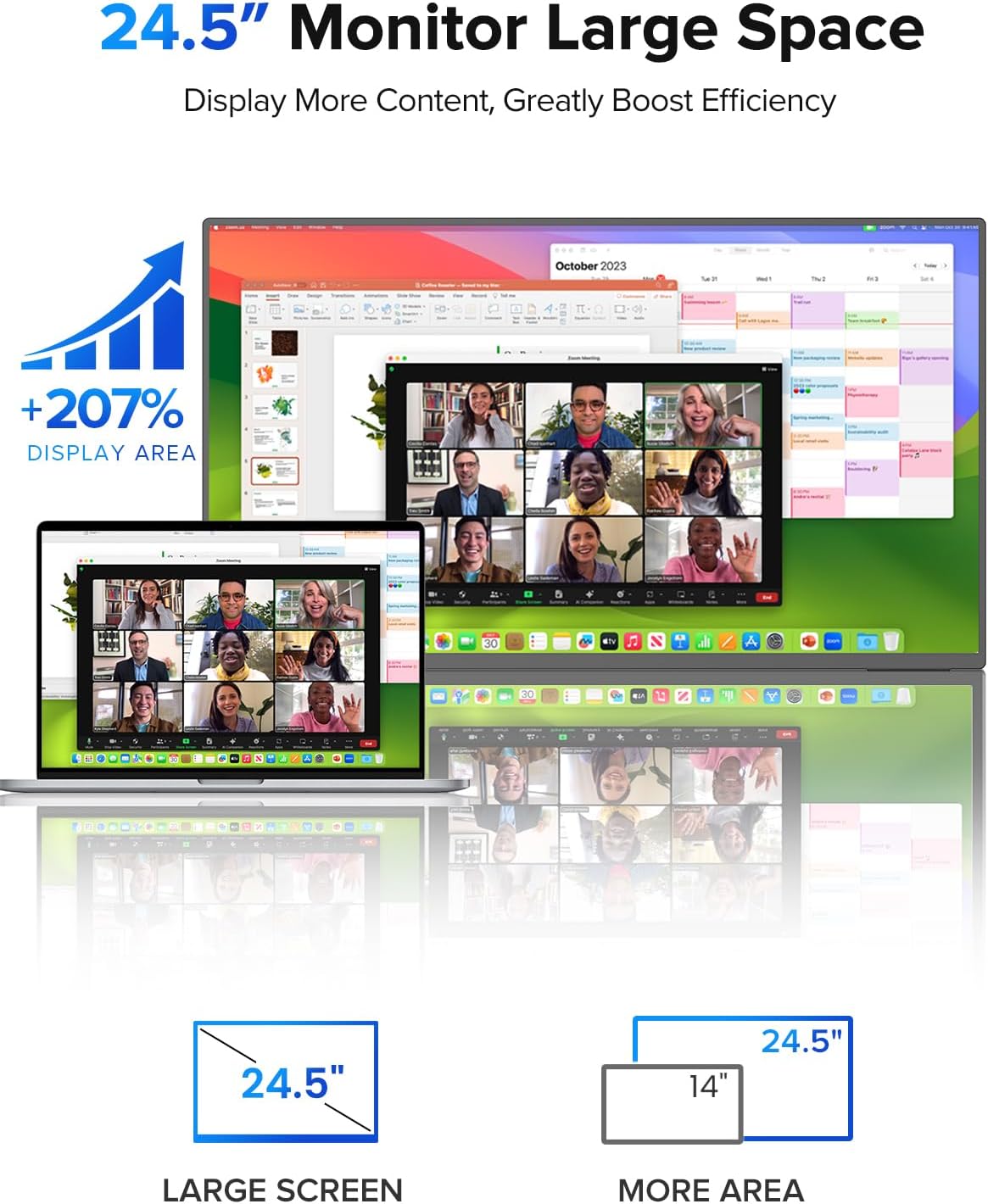 - 【24.5" Large Touchscreen】UPERFECT portable monitor with sensitive ten-point touch control function, making finger sliding, zooming and dragging as smooth as flowing water. Compatible with multiple systems, no mouse or keyboard is required. Just touch and control, making the interaction more intuitive and free. 24.5 inch large screen offers more broader vision, making work efficient and entertainment enjoyable.