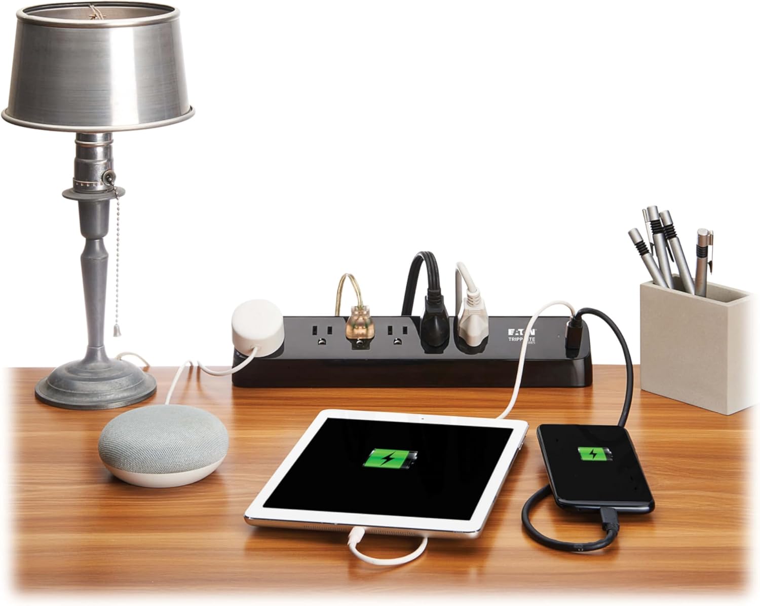 - USB CHARGING PORTS: Fast-charge your smartphone, tablet, eReader, or other mobile device with Power Delivery (PD) charging output up to 30W. Power strip surge protector features two USB-C ports at 3.1 amps per port.