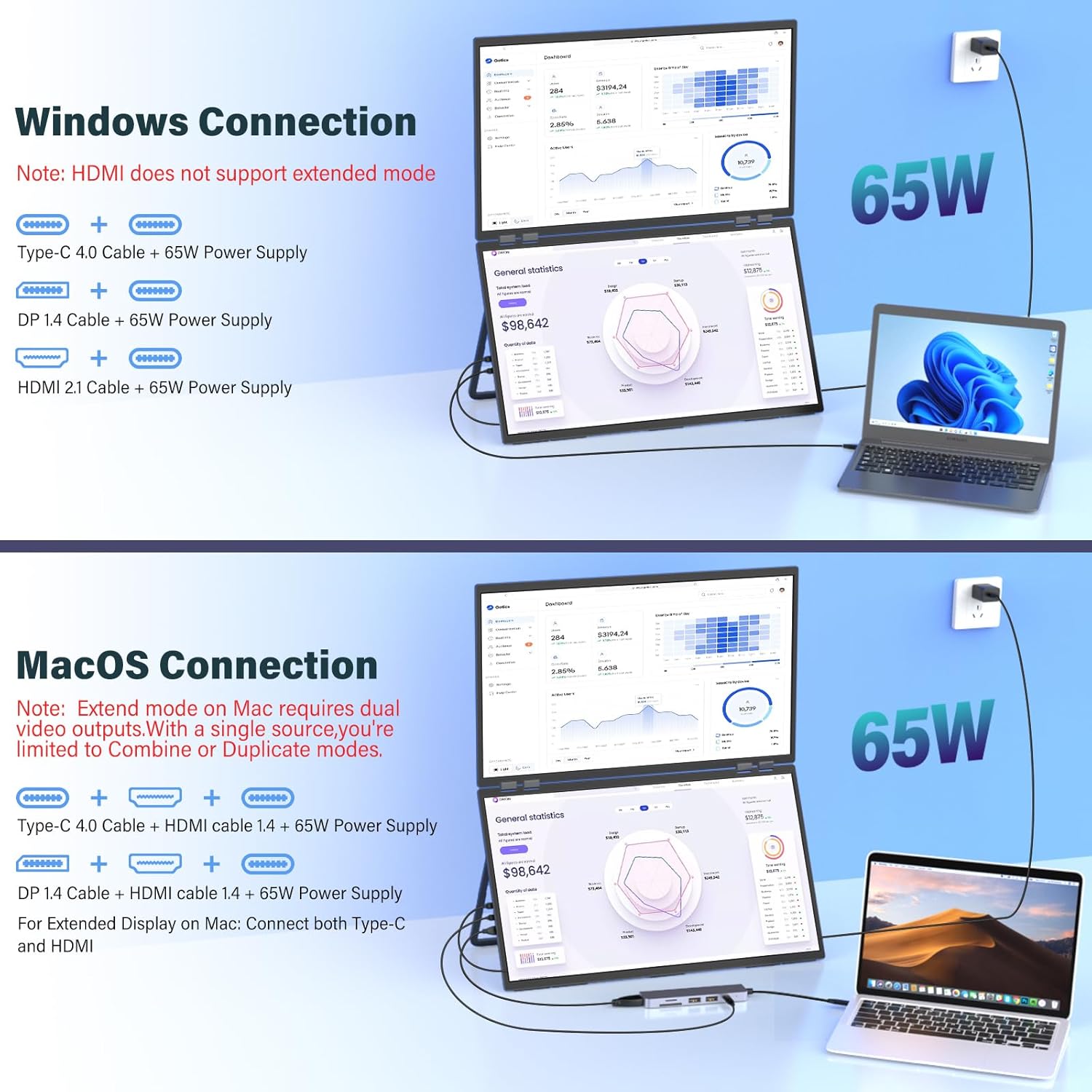- 【Driver-Free Setup: Plug & Play! Multi-Mode Freedom】 No drivers needed – truly plug and play! Seamlessly compatible with macOS & Windows. Instantly switch between three modes: Extend (dual-screen workflow), Duplicate (mirrored display), or Combine (ultra-wide canvas). Transition effortlessly between work and play.