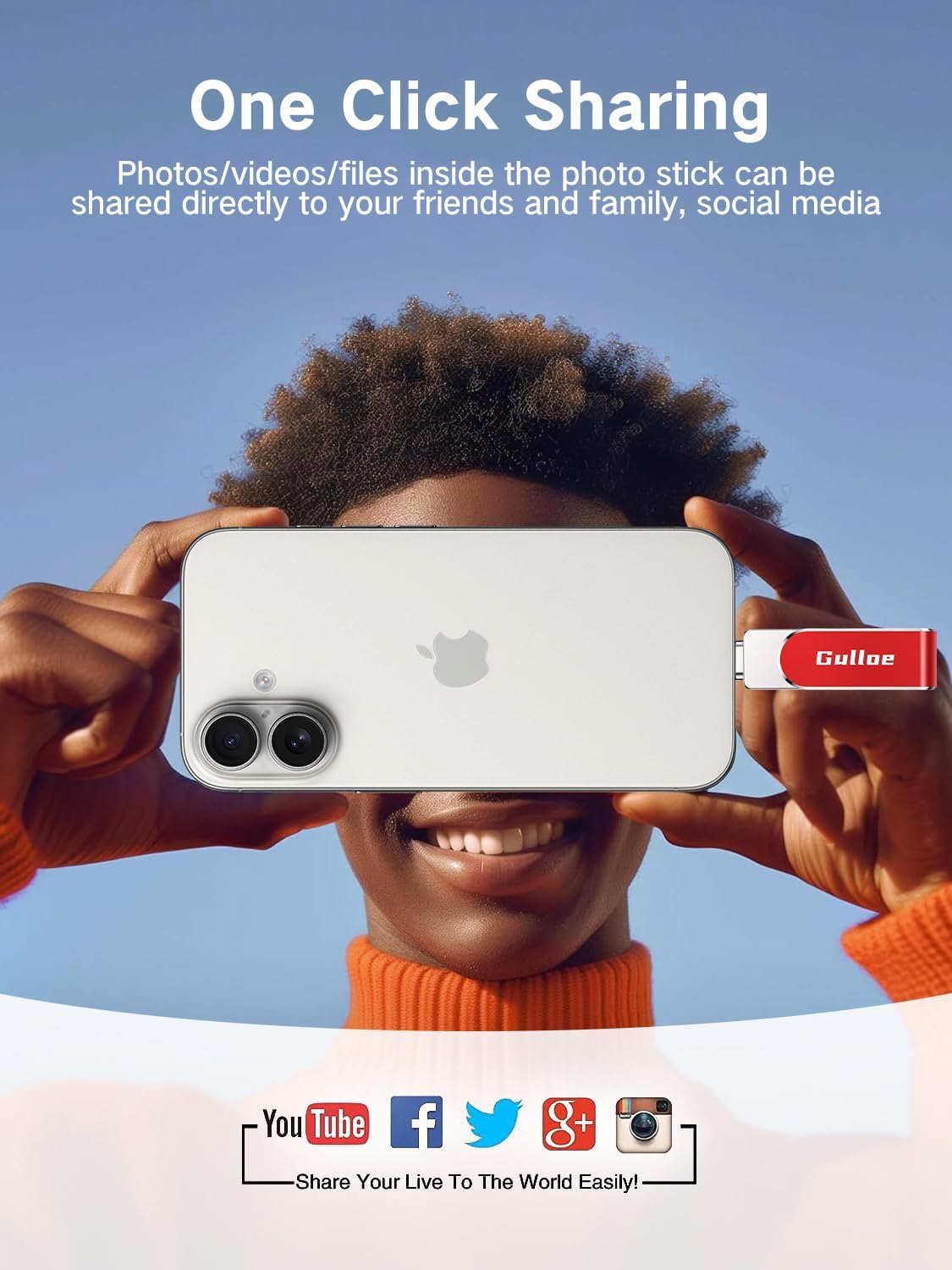 - 【Watch Movies, Photos and Play Music Directly From Phone Flash Drive】Store your favorite videos, audios and music on your iPhone's Photo Stick, then seamlessly plug and play on your iPhone or iPad anytime, anywhere. No more need for Internet or WiFi. This iPhone storage device plays videos in many different formats. Pictures stored on the Phone storage device also support different formats. Great way to store all your pictures and videos on an phone external storage device.