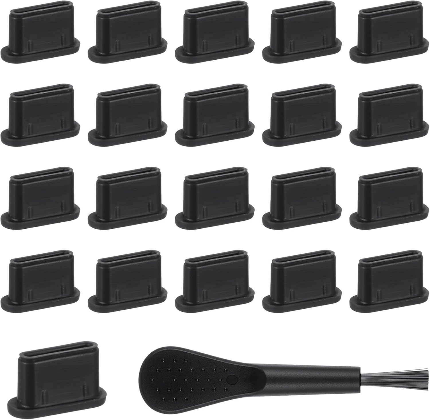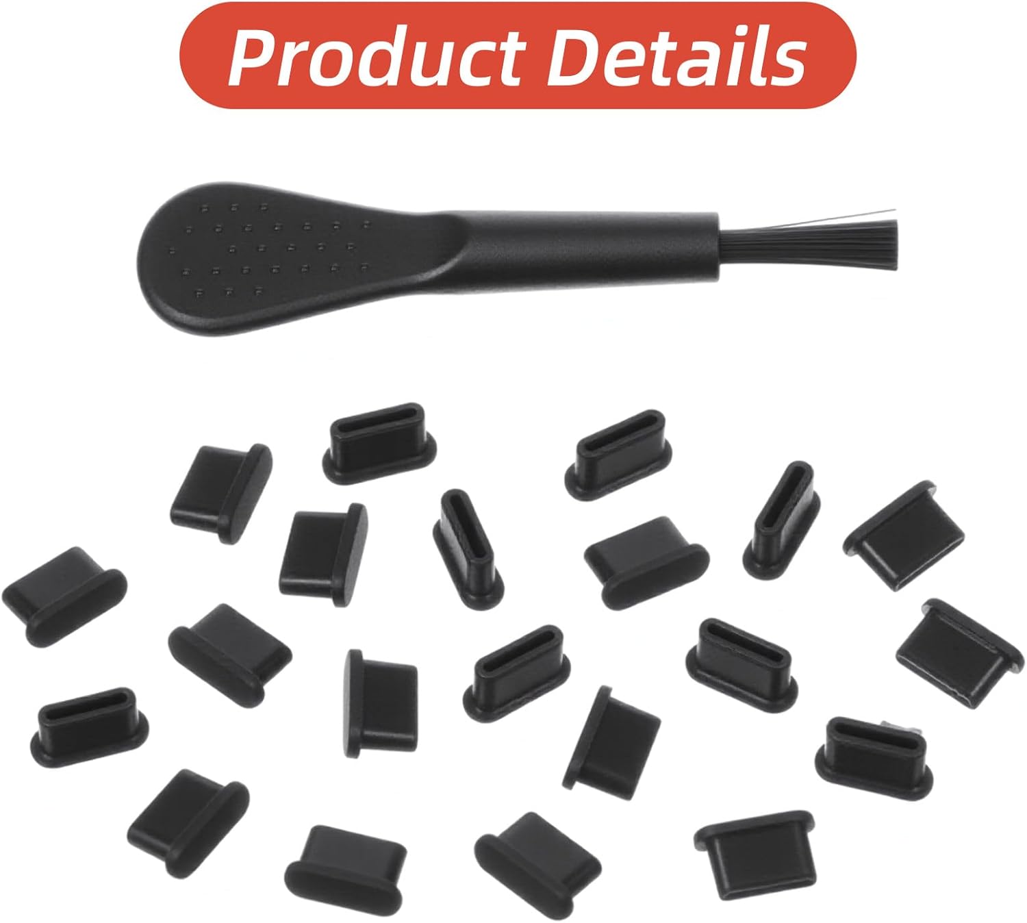 - 【Package Contents】Includes 20 black silicone USB C dust plugs and 1 plastic cleaning brush. The lightweight and portable design makes it suitable for travel or daily use, ensuring your devices stay protected wherever you go