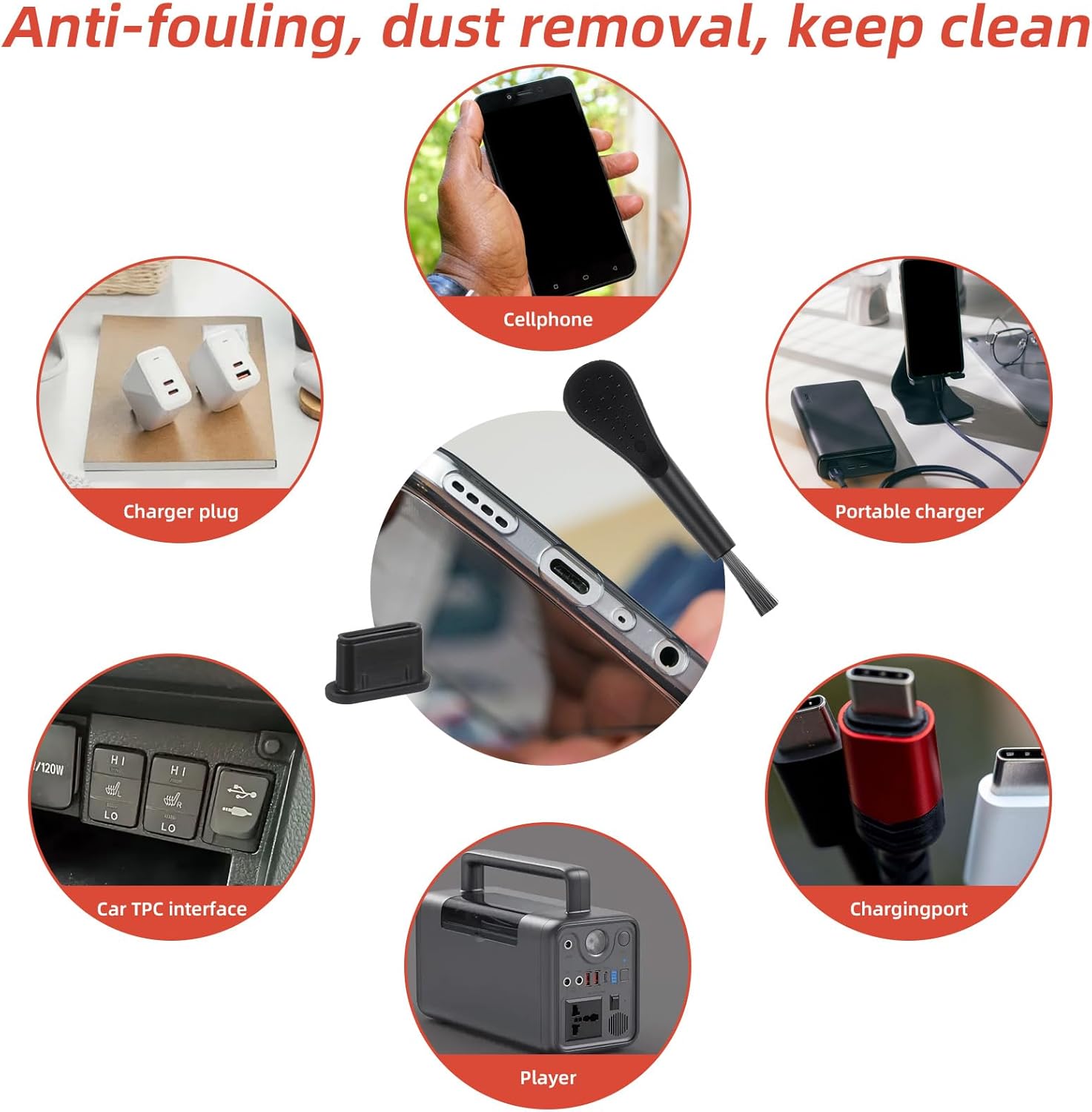 - 【Easy to Use】The anti-dust phone dust plug features a snug fit that stays in place even during movement. Simply insert the dust cover into the Type C port for instant protection. The included cleaning brush helps remove debris before insertion. Removal is just as effortless, with not easy damage the port.