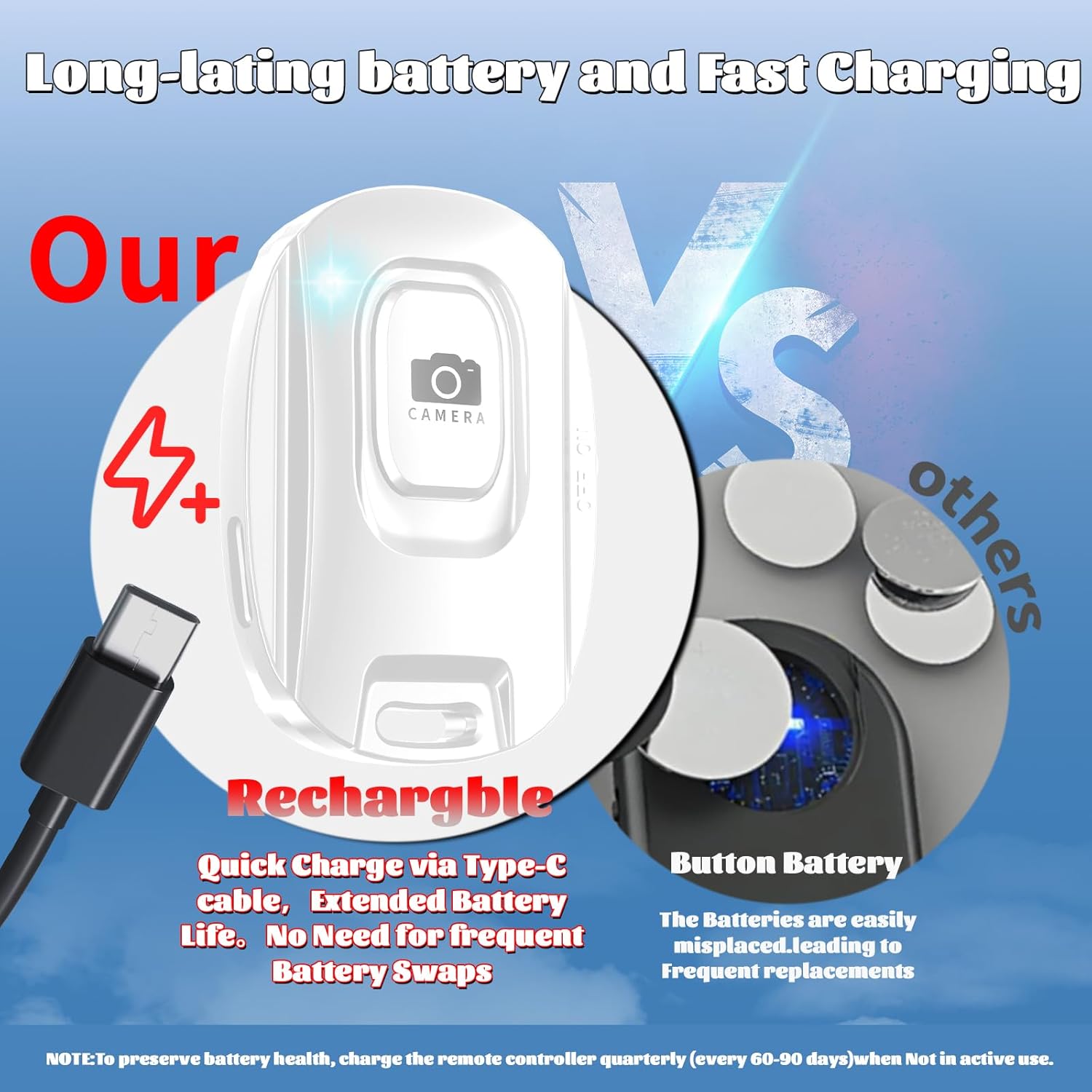 - [Upgraded Rechargeable Bluetooth Remote Camera Control ] MAIRAN Selfie remote Built-in rechargeable battery supports quick charging via included charging cable, eliminating disposable batteries. Enjoy longer standby time for daily convenience.