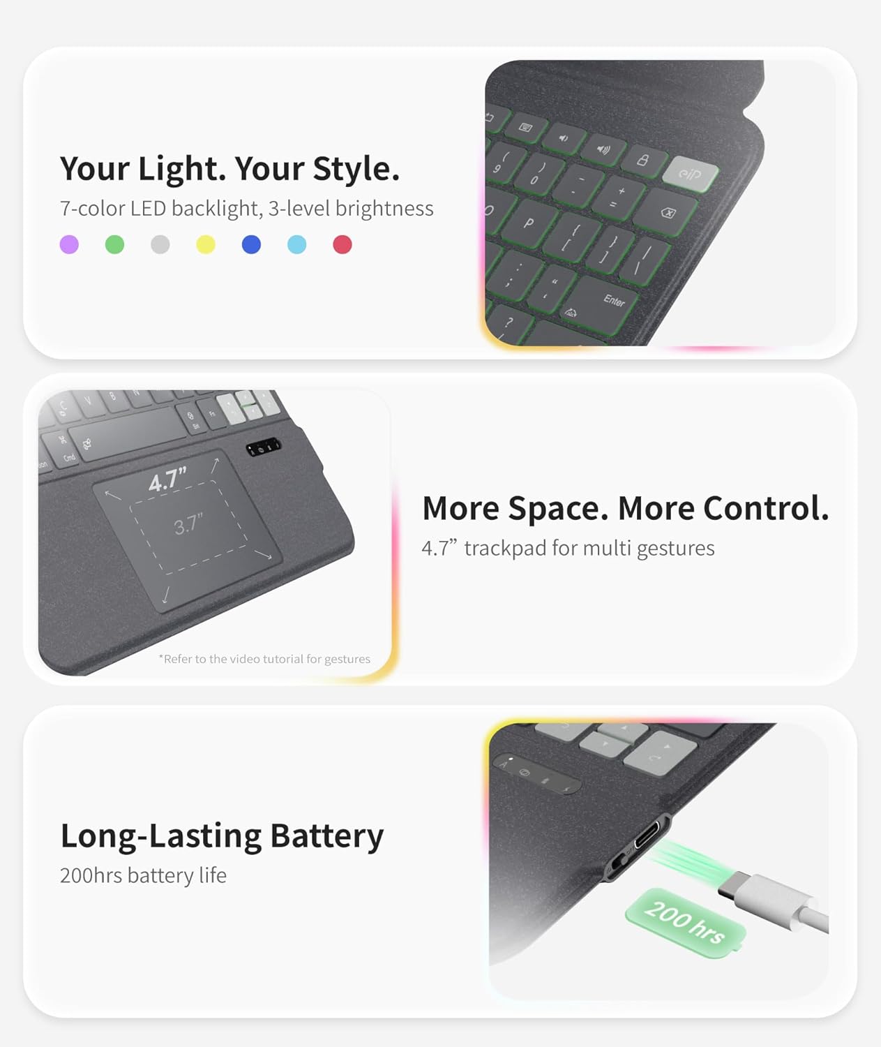 - 【20% Larger Trackpad】- A 4.7 inches trackpad — 20% larger than typical 3.7 inches ones — for a true laptop-like experience. Effortlessly use multi-gesture controls to switch apps, scroll, zoom, and navigate with ease and comfort.