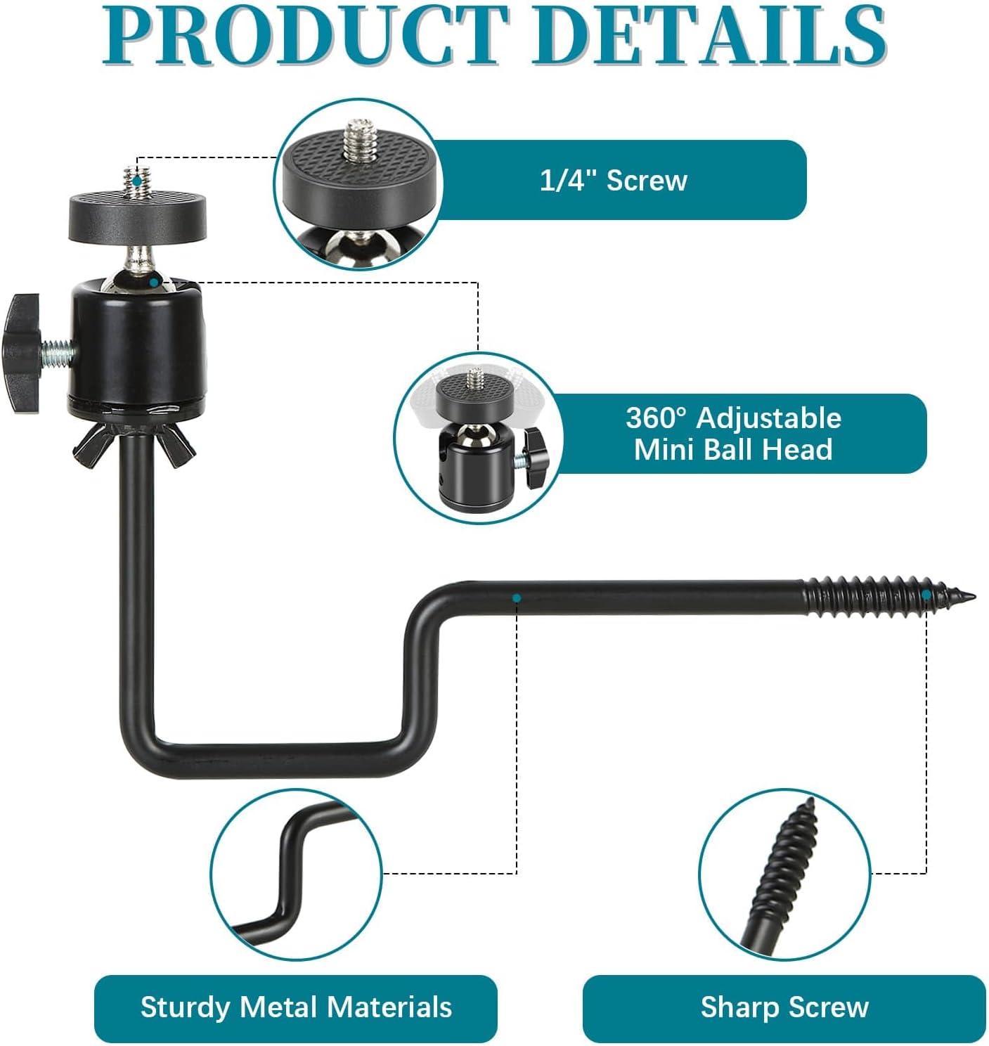 - Universal 1/4" Standard Thread: The trail camera tree mount features universal 1/4" standard threading, compatible with all trail cameras and solar panels equipped with 1/4" screw holes.