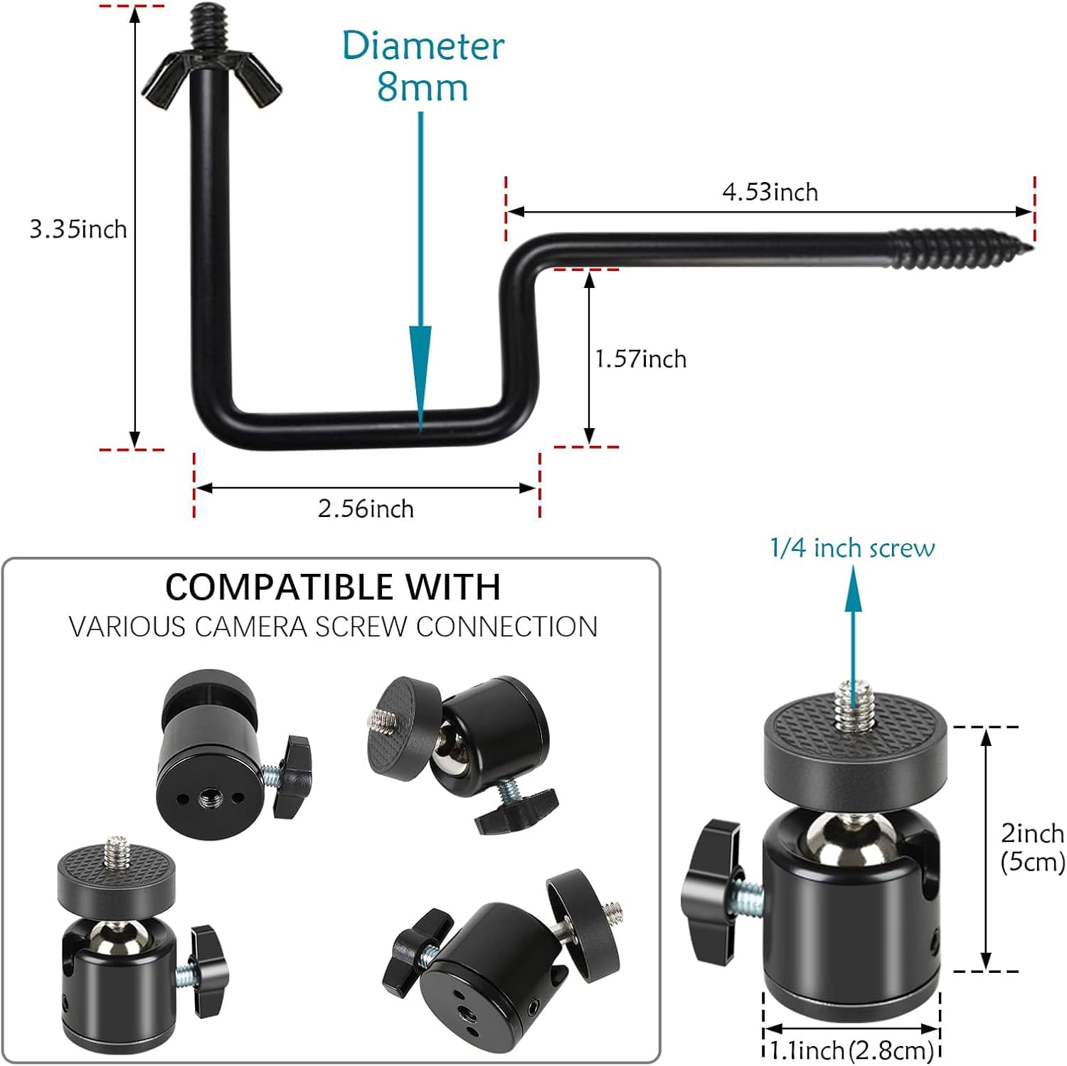 - UNIVERSAL 1/4 INCH STANDARD THREAD: The trail camera tree mount features universal 1/4 inch standard threads, compatible with a wide range of trail cameras and solar panels with 1/4 inch screw holes.