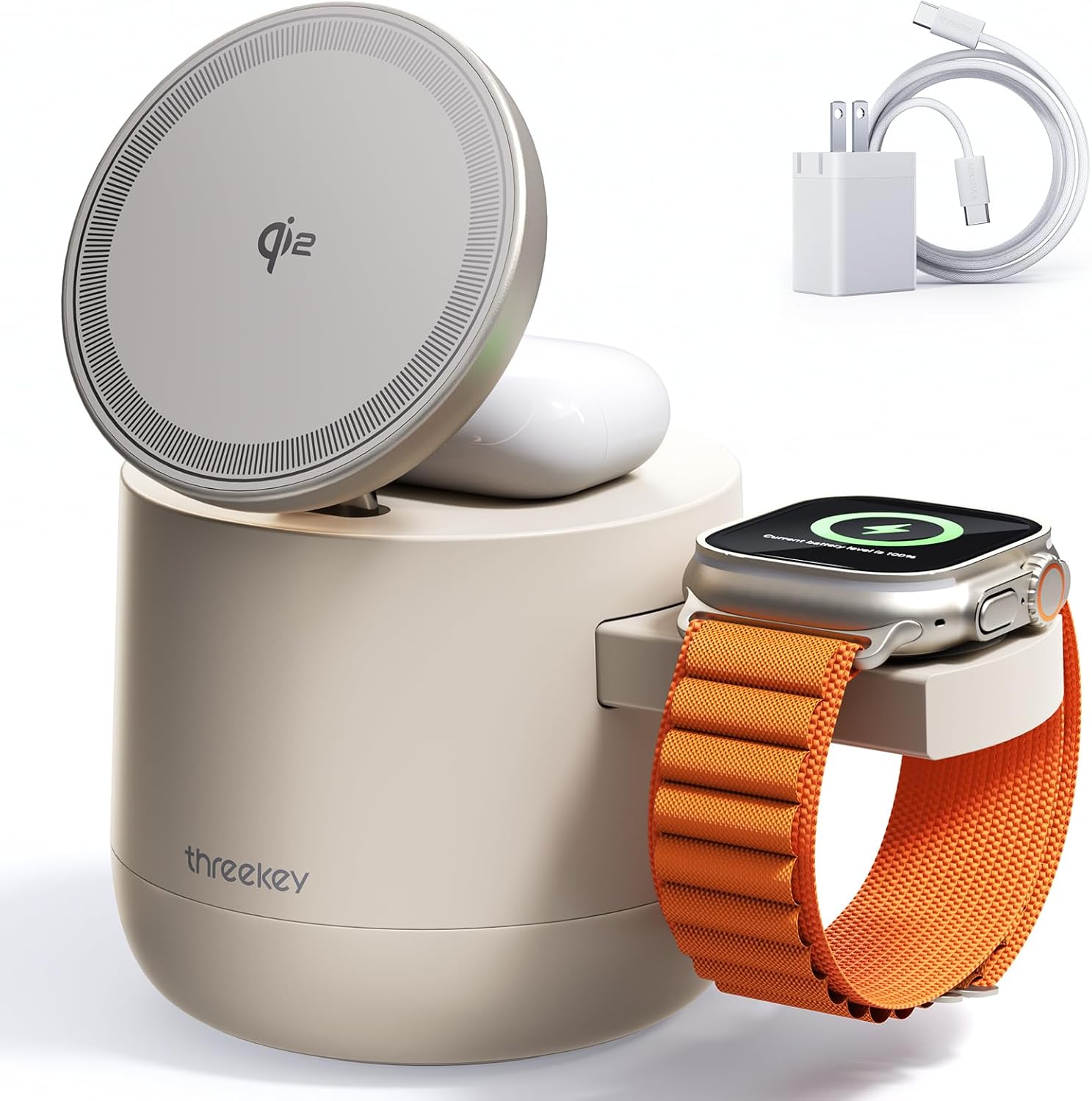 - đă3 in 1 Wireless Charging Station Cube for Your iPhone,iWatch, Airpods and iPadăUpgrades the traditional 3 in 1 wireless charger station for iphone 16 by adding an retractable cable cord. A one-stop wireless charging solution for iPhone, iWatch, AirPods, iPad and most Type-C devices. Say goodbye to tangled cords and messy cables, keeping your space neat and your digital life charged with ease.(PLACE AIRPODS CASE AT THE CENTER AND REMOVE THICK COVERS TO MAXIMIZE CHARGING EFFICIENCY.)