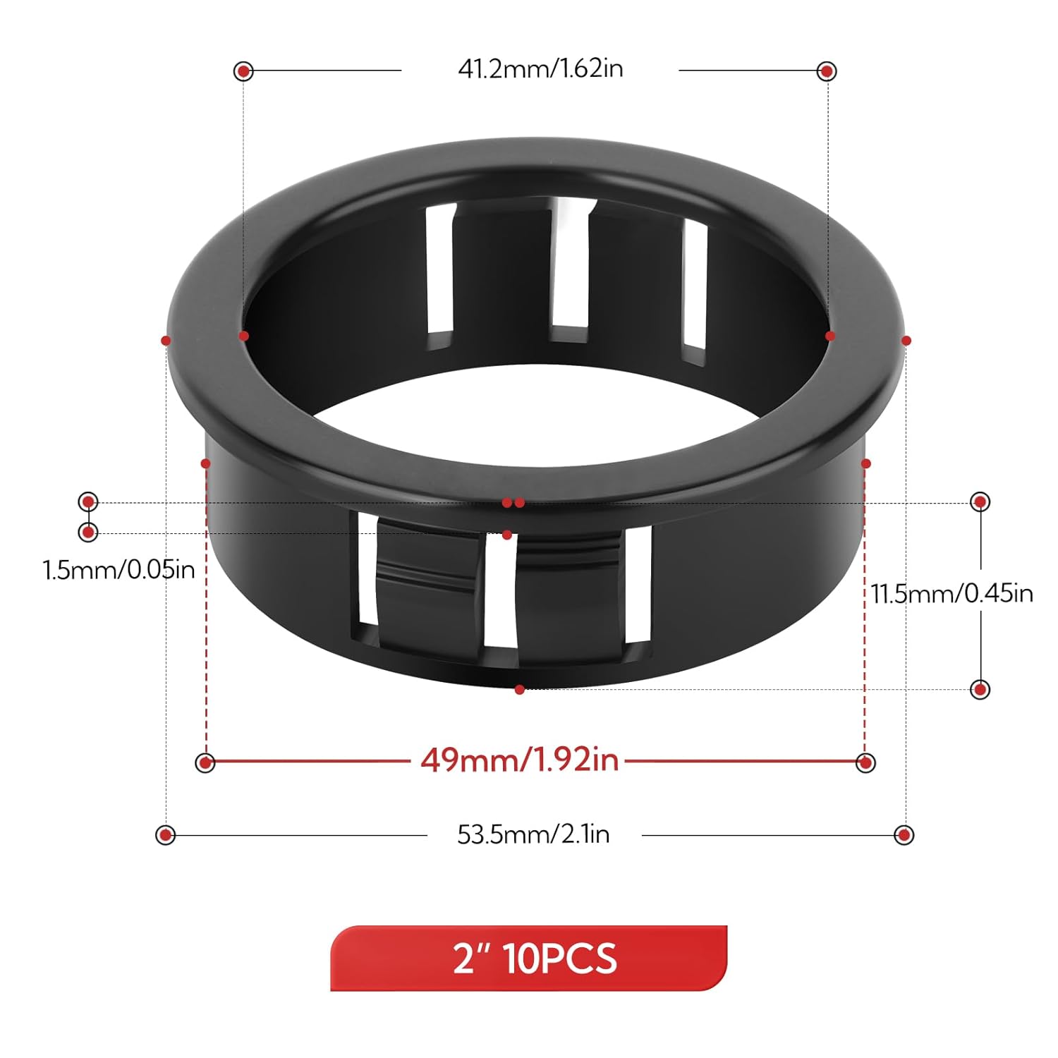 10PCS 2" Black Cable Snap Bushing Grommet, Snap in Cord Bushing Protect Cables