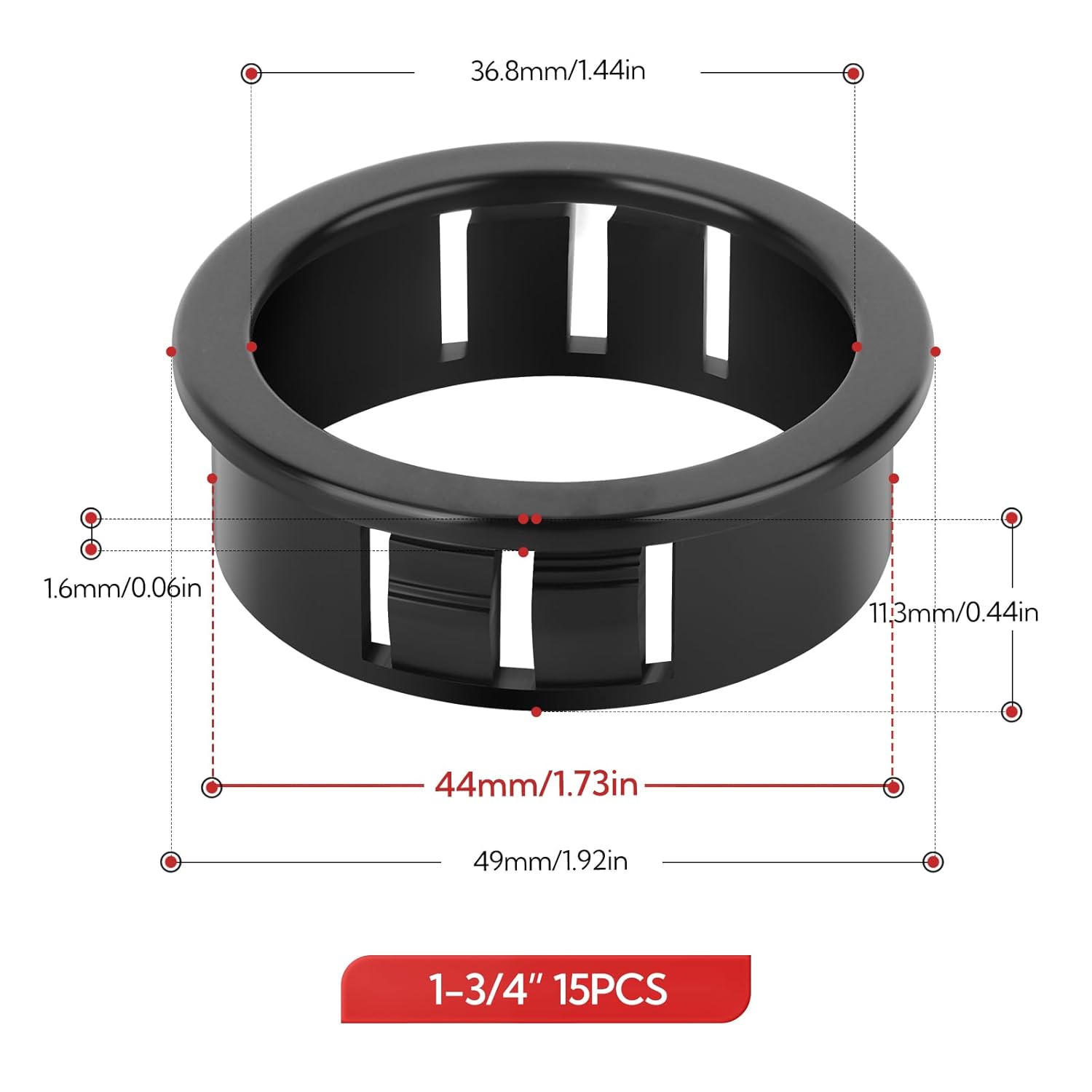 15PCS 1-3/4" Black Cable Snap Bushing Grommet, Snap in Cord Bushing Protect Cables