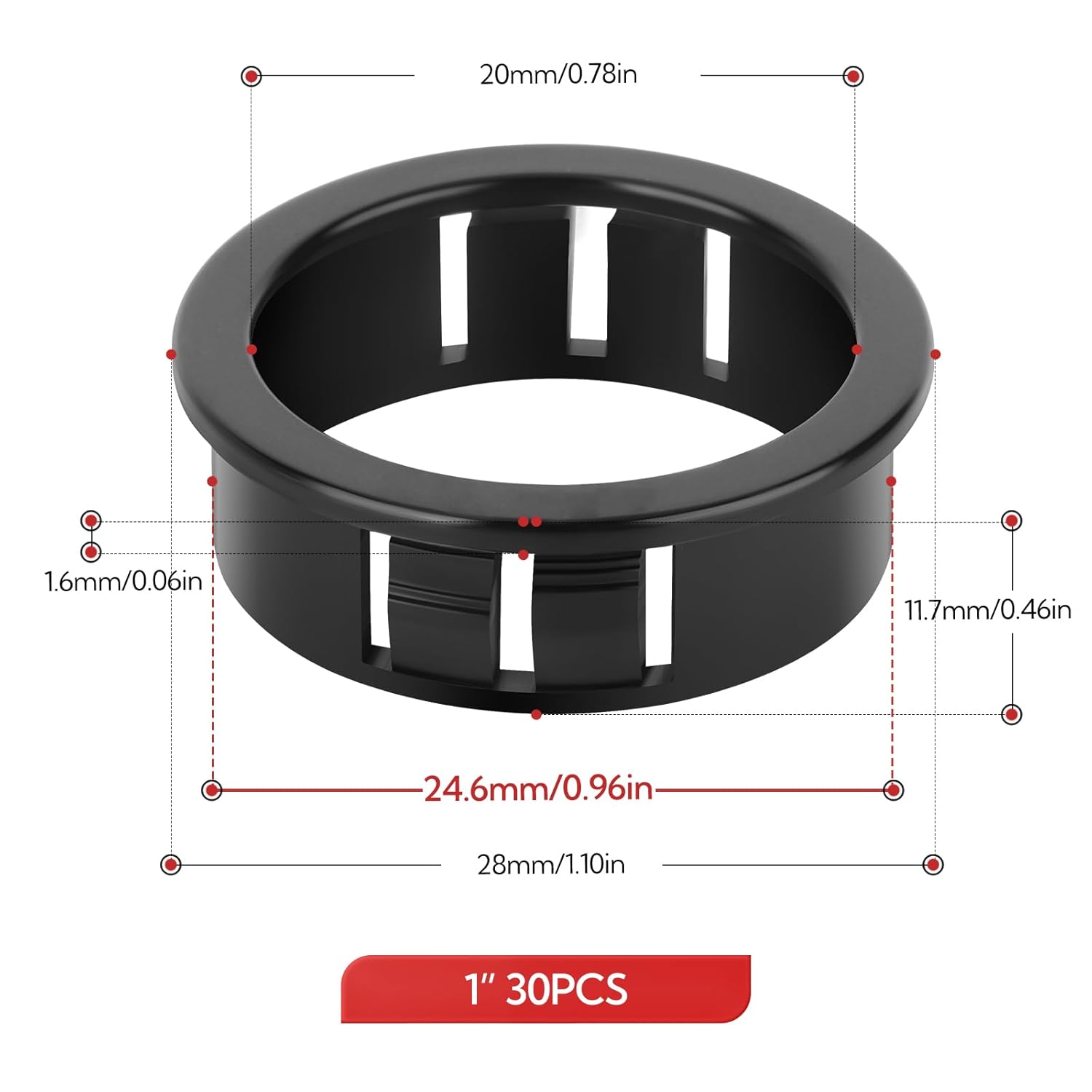 30PCS 1" Black Cable Snap Bushing Grommet, Snap in Cord Bushing Protect Cables